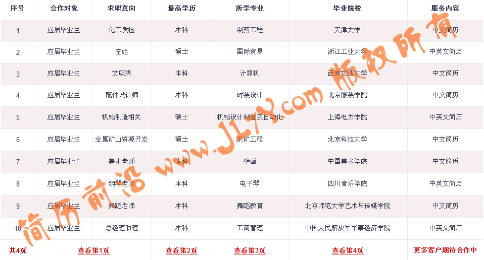 以下是本站近期为部分应届毕业生提供简历服务的客户名单